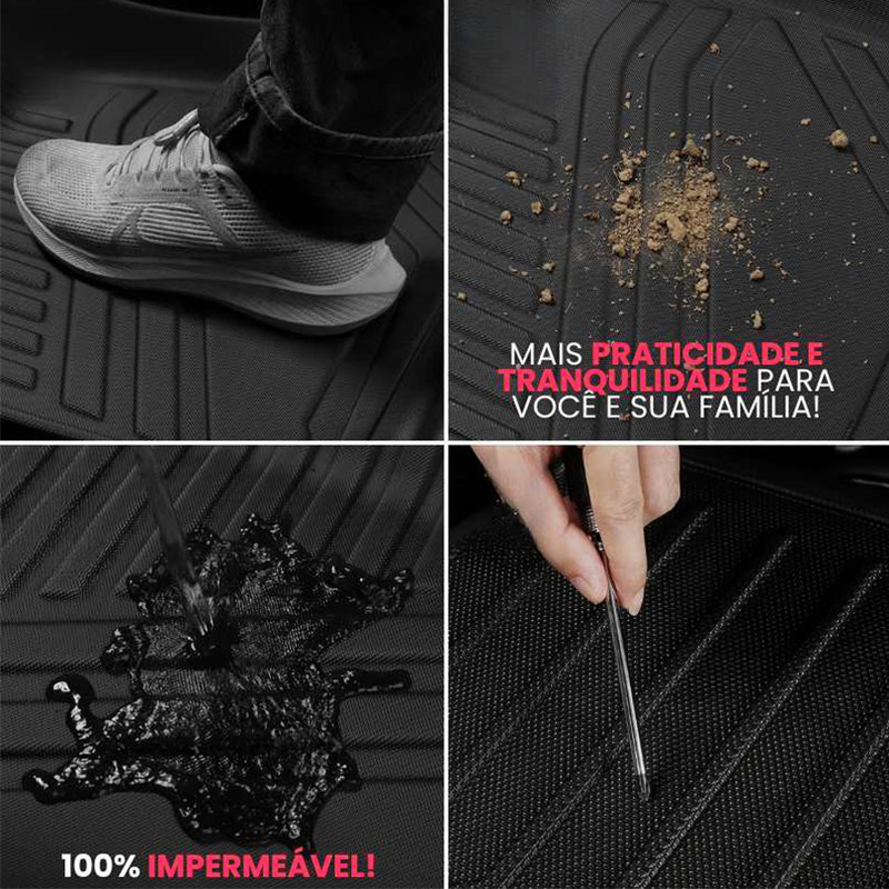 Polipropileno premium + TPE moldado em 3D, base antiderrapante e alta resistência à água e desgaste.
